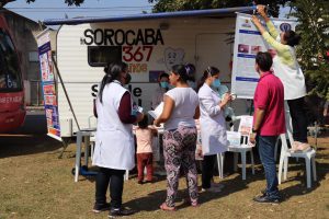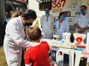 Gleice Batista, moradora da Vila Nova Sorocaba, também participou das atividades com seus filhos, Mateus e Guilherme. Além de saborearem o bolo de aniversário da cidade, eles ainda conversaram e tiraram dúvidas sobre escovação dos dentes com a equipe do Trailer da Odontologia, também da SES.