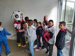 A ação realizada na escola também contou com a animação da mascote dos Bombeiros, um simpático cãozinho dálmata, personagem que chamou a atenção das crianças.