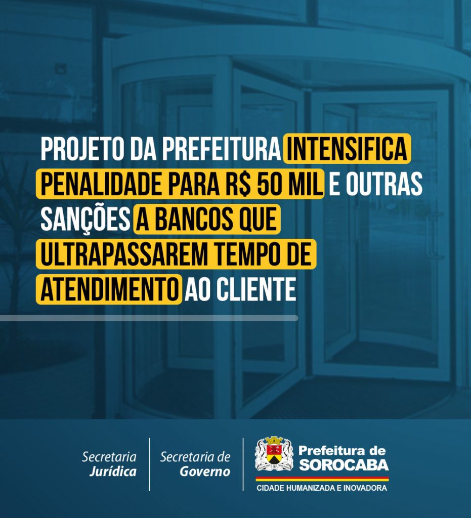 A Prefeitura de Sorocaba protocolou, na segunda-feira (7), na Câmara Municipal, um Projeto de Lei que intensificará a penalidade a bancos que não observarem o tempo de espera limite dos clientes nas filas de espera.