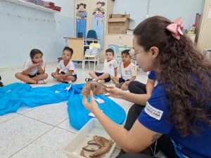 Durante a ação, os alunos conheceram alguns peixes que habitam o Rio Sorocaba, quando puderam fazer o manuseio de espécies fixadas em solução (para manutenção de sua forma original), como o mandi e o barrigudinho e, utilizando uma lupa, observar suas estruturas e aprender sobre suas principais características, além de observar aves, como o biguá e a garça. Por fim, ganharam uma pintura corporal, nos braços, com o desenho de um peixe. “É uma experiência muito positiva e que está sendo muito bem acolhida pelas escolas, com o apoio da Secretaria da Educação (Sedu). Então, vemos que há sempre muita alegria em participar do projeto”, conclui Viviane.