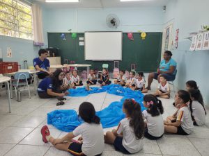 O êxito do projeto “Rio vai à Escola”, voltado à educação ambiental, justificou a elaboração de uma lista de espera entre as escolas interessadas em participar do projeto, desde o ano passado. Agora, em 2024, essas escolas começaram a ser atendidas e uma das primeiras a receber o projeto é o Centro de Educação Infantil (CEI) 11, localizado no Jardim Belmejo, para turmas de manhã e tarde, do Pré I e Pré III, com alunos entre quatro e cinco anos.
