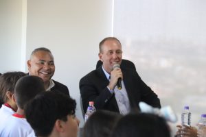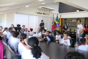 Acompanhados por professores e pela diretora da escola, Alessandra Rosa Vieira, os alunos conversaram com o prefeito Rodrigo Manga, em seu Gabinete, no sexto andar do Paço Municipal, juntamente com a secretária da Educação, Marlene Leite, mais o presidente da Câmara Municipal, vereador Cláudio Sorocaba. Durante a visita, as autoridades puderam compartilhar um pouco de suas experiências e atribuições profissionais.