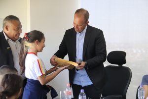 Durante a visita ao Paço Municipal, a aluna Lara, do 5º ano, representando o grupo, entregou ao prefeito desenhos da cidade, feitos pelos alunos, bem como demandas e sugestões para a escola e o bairro Genebra, onde está localizada a unidade. O mesmo ato também foi feito durante a visita na Câmara Municipal e entregue ao presidente do Legislativo.