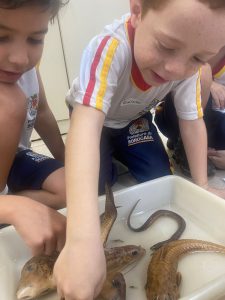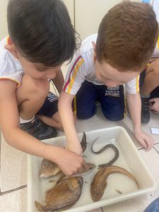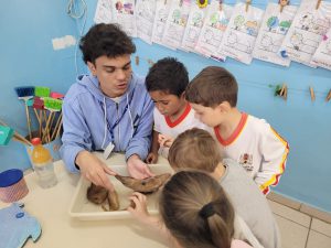 Durante a ação, os alunos também conheceram de perto alguns peixes que habitam o Rio Sorocaba, quando puderam fazer o manuseio de espécies fixadas em solução (para manutenção de sua forma original) e, utilizando uma lupa, observar suas estruturas e aprender sobre suas principais características, além de observar algumas espécies de aves.