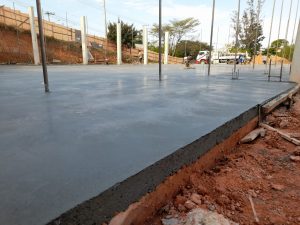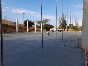 As próximas etapas da obra serão o fechamento em alambrado do campo de futebol e da quadra de areia, os passeios internos e o início da cobertura da quadra.