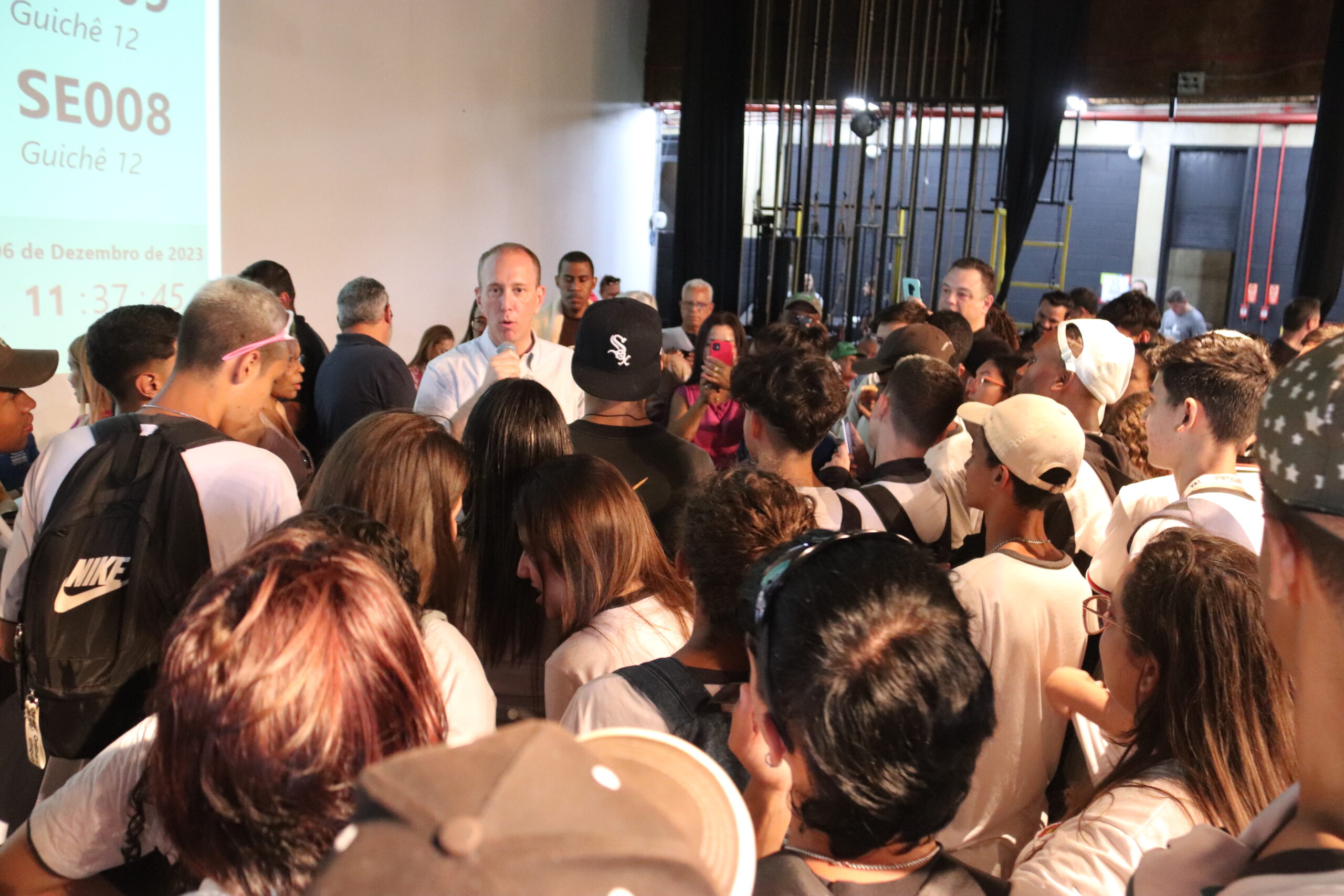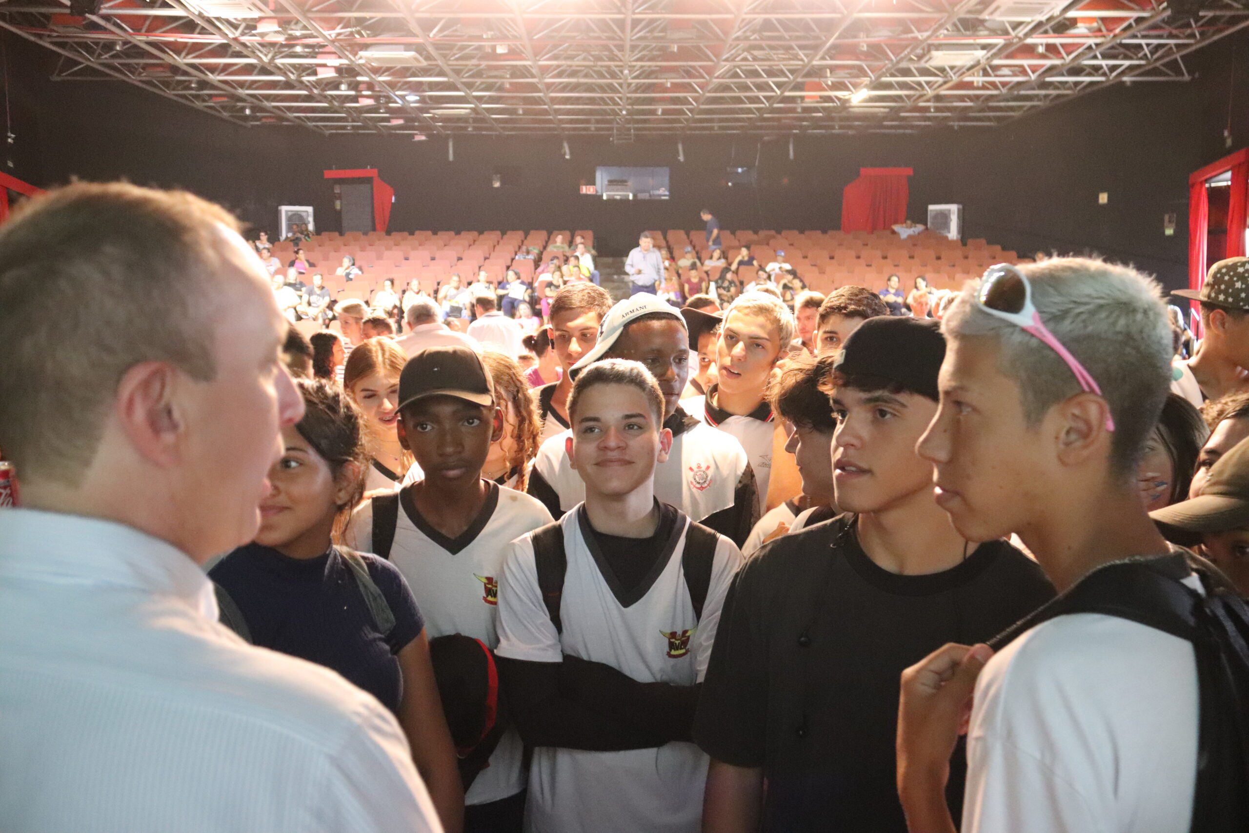Além disso, um grupo de adolescentes chamou a atenção ao acessar o palco do Teatro Municipal “Teotônio Vilela”, onde é realizado o evento mensal. Eram os cerca de 30 alunos de uma turma do 2º ano do Ensino Médio da Escola Estadual Antônio Vieira Campos, do Júlio de Mesquita Filho, na Zona Oeste, que veio especialmente para conhecer o Paço Municipal e o projeto “Quarta com o Prefeito”, no qual puderam falar pessoalmente com o prefeito Rodrigo Manga. “É muito importante ver esses jovens se interessando pelo destino político e pelas ações da Prefeitura, pois eles são o futuro da nossa cidade”, concluiu o prefeito.