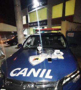 Uma unidade do Canil da GCM, que fazia patrulhamento de rotina pelo bairro, notou que o suspeito tentou fugir após constatar a aproximação da viatura.  O rapaz correu em direção a uma área verde e tentou se desfazer de uma sacola que carregava.