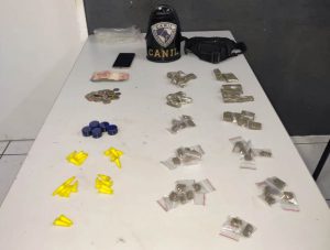 Após abordado, o suspeito confirmou aos guardas que ele traficava drogas no bairro. Dentro da sacola, havia 50 porções de maconha, 22 de cocaína e cinco de skunk.
