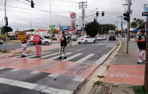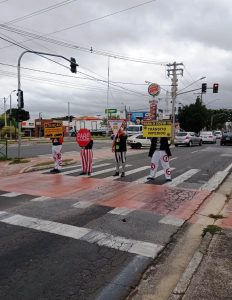 Na nova ação de educação no trânsito, um grupo de mímicos, vestidos com trajes alusivos, mostram placas com mensagens de conscientização aos motoristas nos cruzamentos, no momento em que aguardam a liberação do semáforo. “O que vale para a segurança no trânsito, vale também para os protocolos preventivos à Covid-19”, complementa a gerente da Urbes.