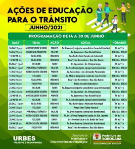A Semob e a Urbes mantiveram um calendário diário com outras ações educativas de trânsito, para todo o mês de junho, com temáticas distintas: como utilizar corretamente e respeitar a faixa de travessia de pedestres e o risco de acidentes decorrentes do abuso de velocidade por motociclistas. Os personagens caracterizados como “emojis” também estão mantidos nas ações, alertando sobre os riscos envolvidos no uso do telefone celular pelo motorista, enquanto dirige.