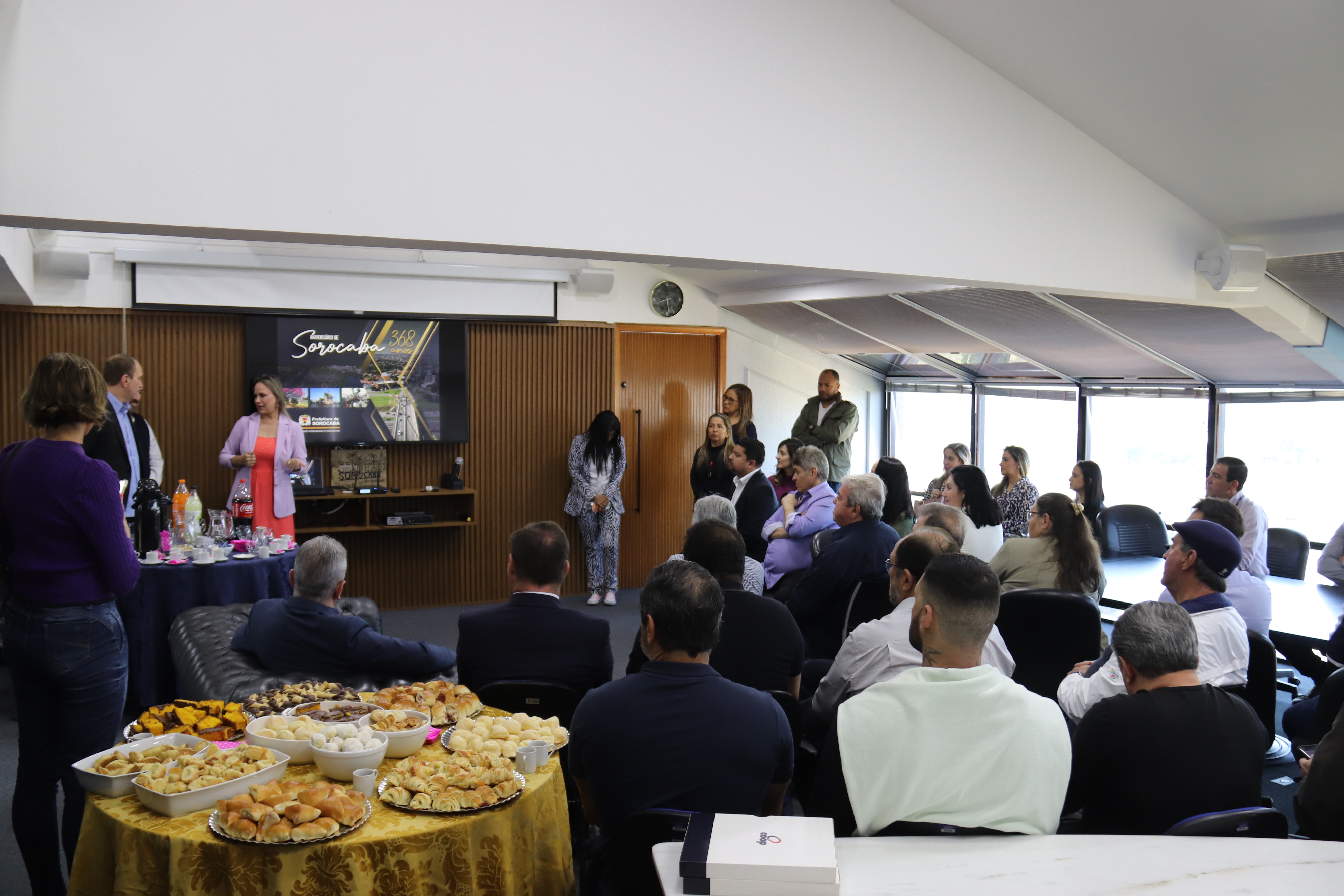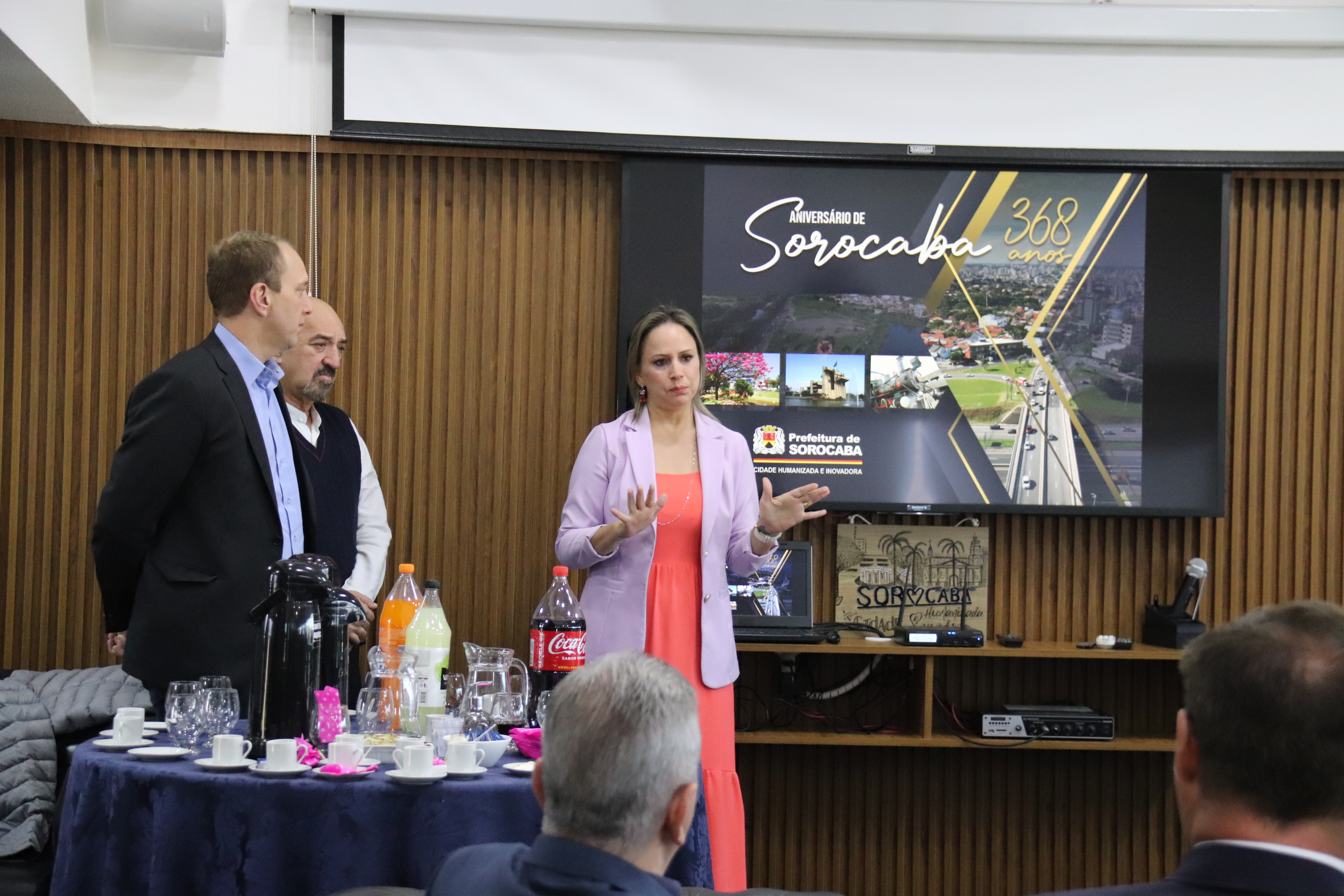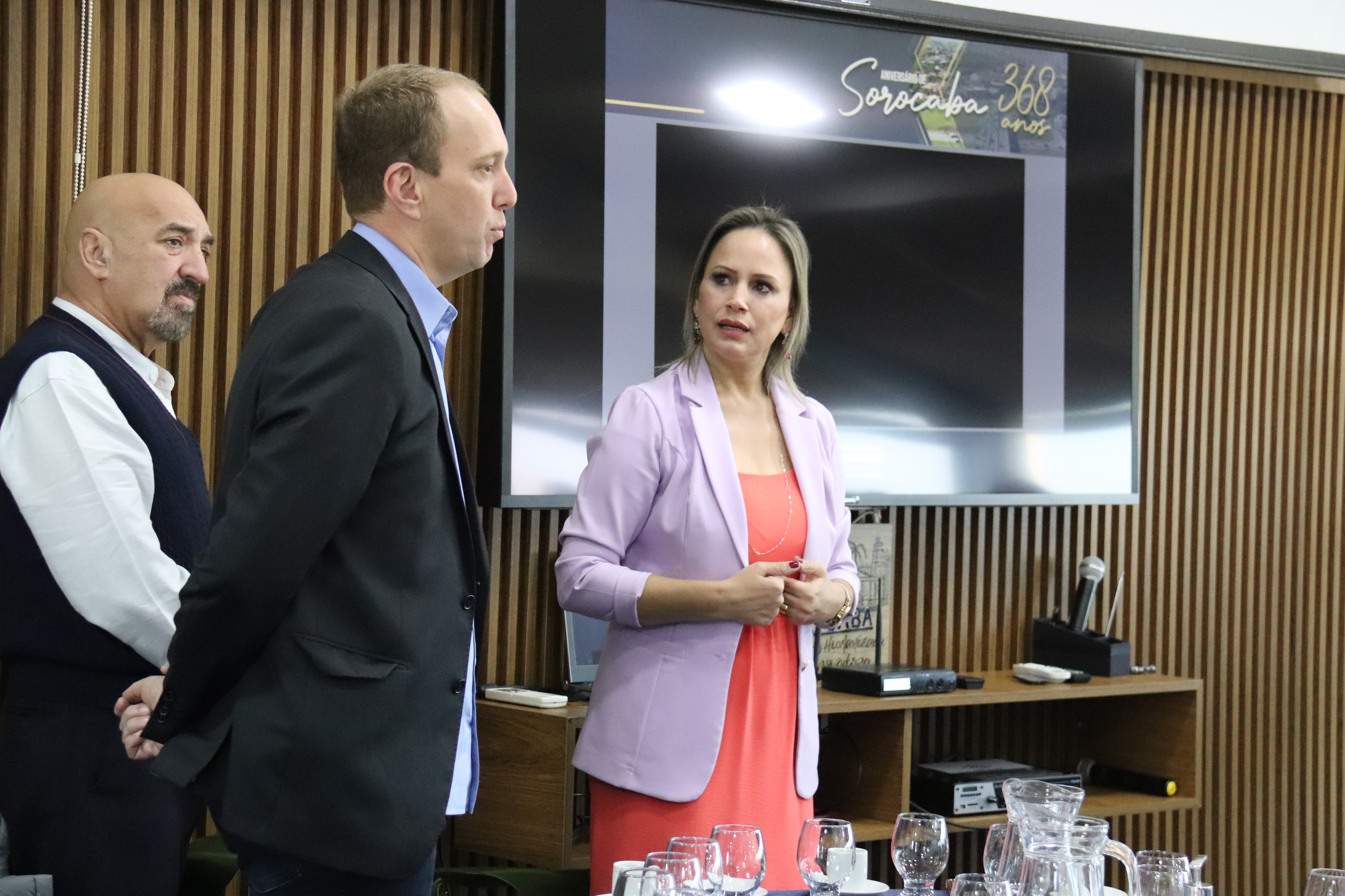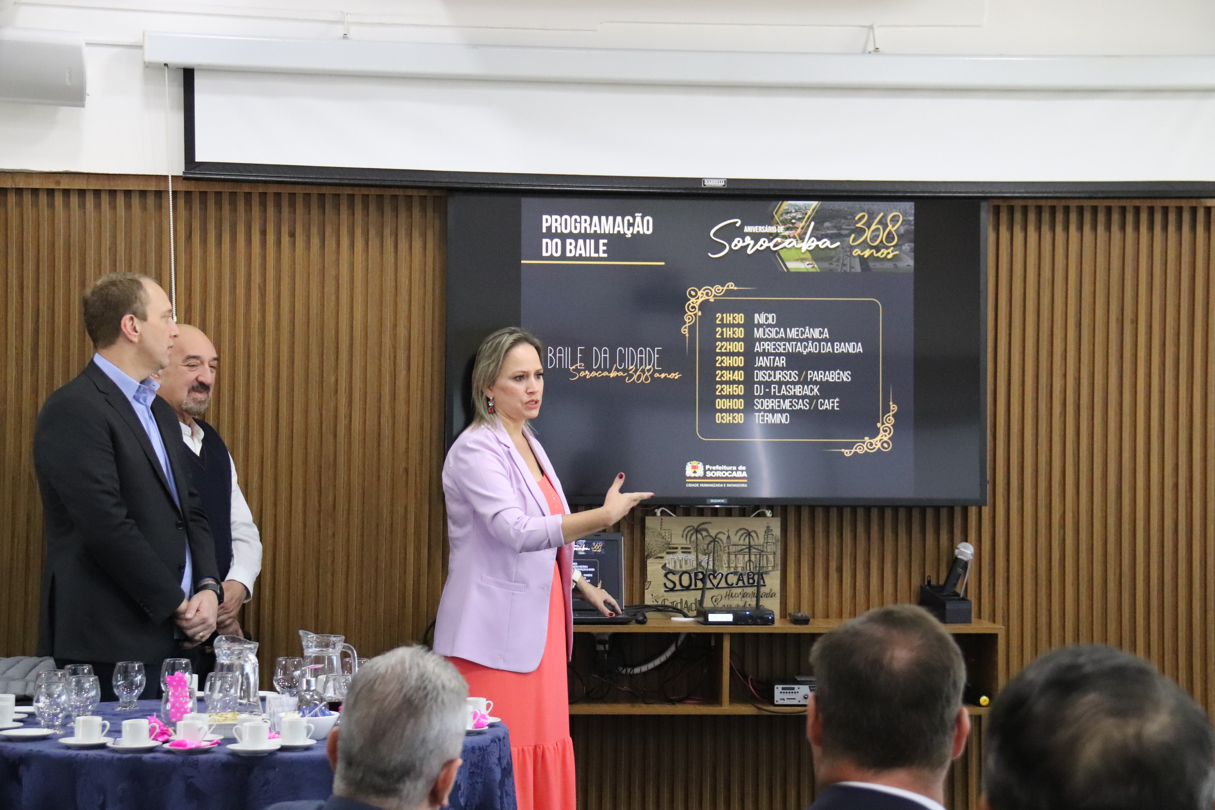 Nesta segunda-feira (1), o prefeito de Sorocaba, Rodrigo Manga, o vice-prefeito Fernando Martins da Costa Neto e a primeira-dama Sirlange Frate Maganhato apresentaram, para empresários do município, a programação oficial do aniversário de 368 anos de Sorocaba (15 de agosto), que contará com o saudoso Baile da Cidade, a ser realizado no próximo dia 12 de agosto, às 21h30, no Ipanema Clube, mediante apresentação de convite.