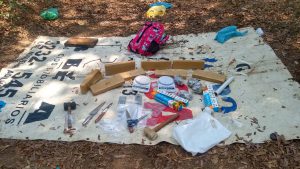 Segundo a GCM, a equipe da Romu realizava patrulhamento no Parque São Bento quando visualizou um rapaz correndo em direção a uma área verde. Sem ele perceber, os guardas o seguiram dentro da mata e encontraram uma lona branca estendida no chão com diversos objetos e drogas.