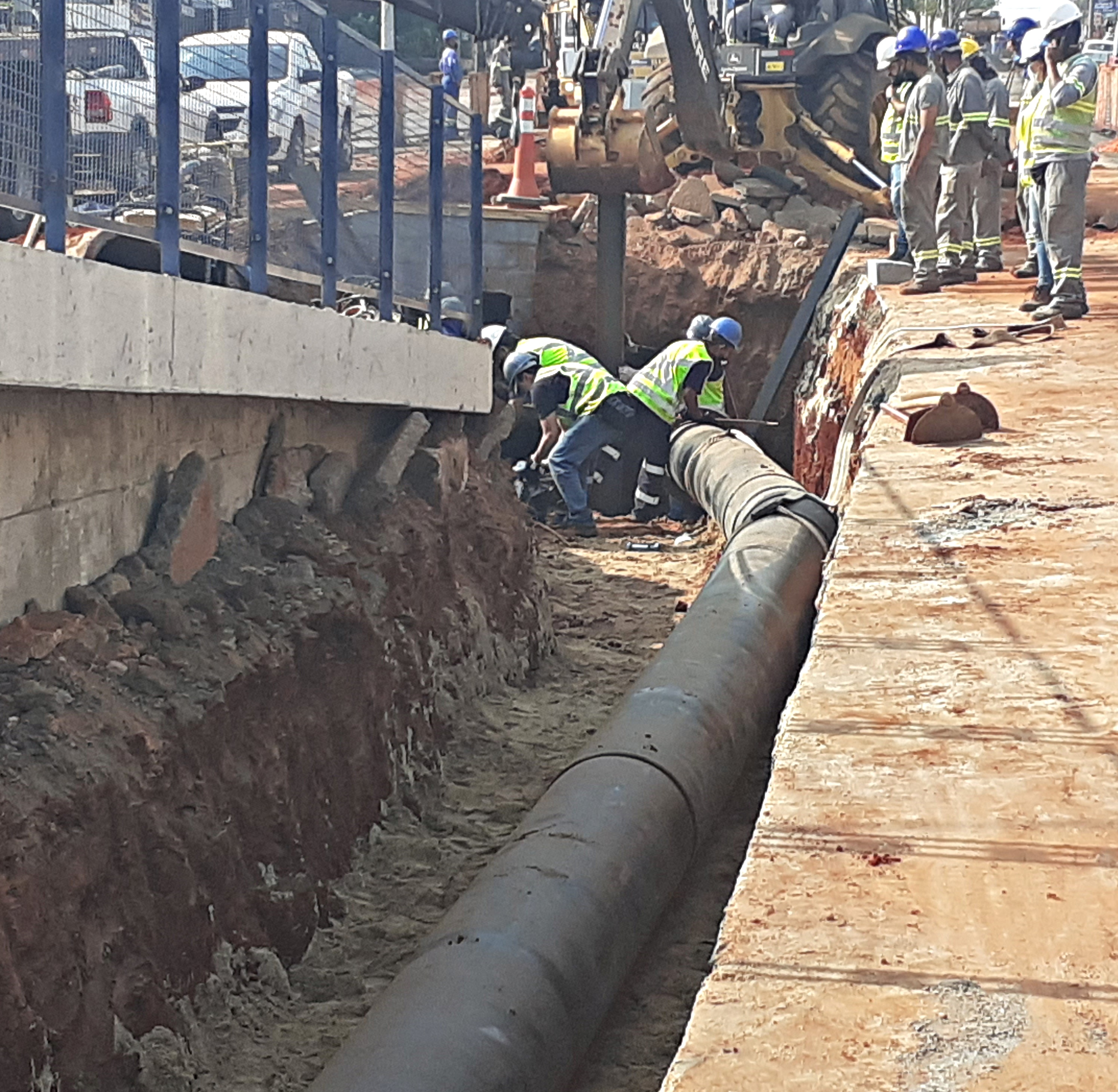 Assim que a intervenção foi concluída, a rede remanejada foi novamente colocada em carga e o abastecimento vem sendo normalizado, gradativamente.