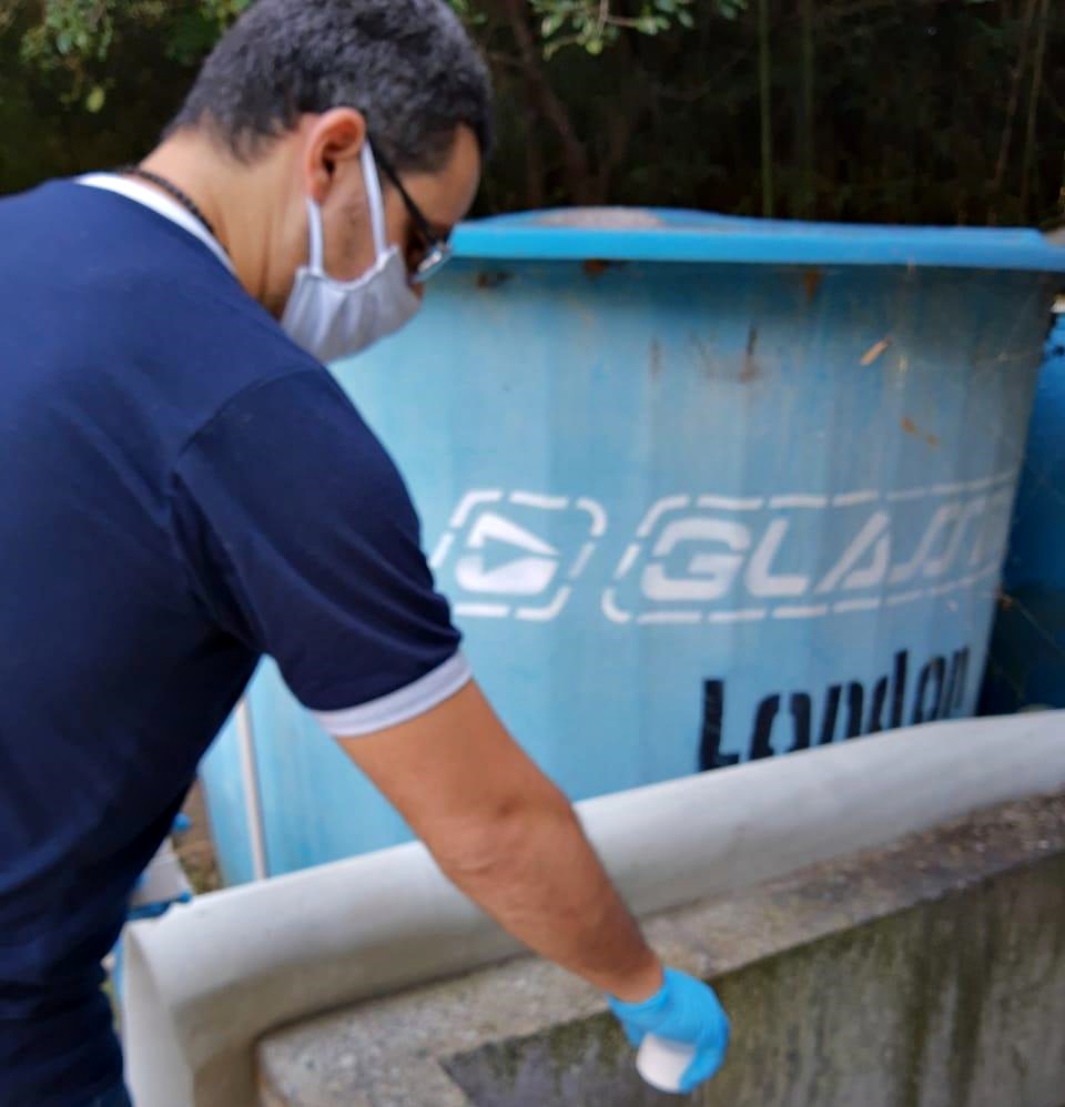 Na sequência, os locais em que seja detectado o acúmulo de água ocorre o tratamento necessário, com a aplicação de larvicida, cuja ação permanece por até dois meses, além de pastilhas de cloro, produtos que têm alto poder de desinfecção.