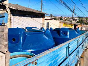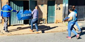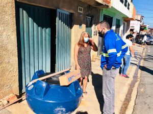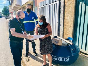 A entrega teve início na sexta-feira (23), com a viatura da autarquia se deslocando até a Vila Barão, onde a moradora Claudinéia Ribeiro recebeu, da equipe que coordena o programa, a caixa d’água de 500 litros, o kit de materiais e o manual de instalação.