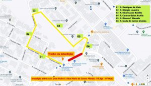 A Urbes – Trânsito e Transportes orienta os condutores que precisarem circular por essa região que façam o desvio, utilizando as ruas Maria do Carmo Mendes, Dirceu d’ Almeida, Carmem Galan Archila, Olímpio Loureiro e Rodrigues de Melo, como opção para acessar a Rua Ramon Haro Martini, mais à frente, ou seguir outros trajetos. O local está devidamente sinalizado e conta com o monitoramento de agentes de trânsito.