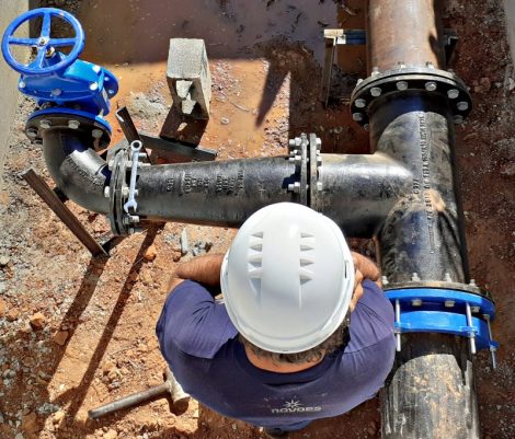 Assim que o trabalho estiver concluído, a rede interrompida para a instalação da válvula reguladora será novamente colocada em carga e a distribuição de água começará a ser normalizada gradativamente.