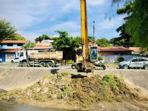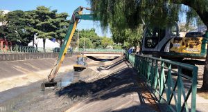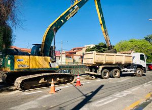 O serviço, que vem sendo executado com a utilização de uma retroescaveira e de uma escavadeira hidráulica, consiste na retirada do sedimento que ficou depositado no leito do córrego. O material recolhido é transportado em três caminhões e depositado em aterro apropriado. Ainda, ocorre no local a remoção de mato e de todo tipo de lixo que é carreado pela correnteza, em dias de chuva.
