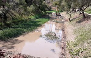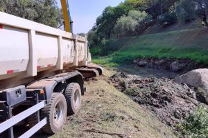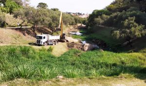 Os serviços, que vêm sendo executados com a utilização de uma escavadeira hidráulica, consistem na retirada do sedimento que ficou depositado no fundo das Bacias de Contenção. O material é transportado por caminhões e depositado em aterro apropriado. Também é feita a remoção de mato e todo tipo de resíduo que é carregado em dias de chuva.