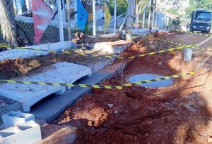 As obras, que tiveram início na primeira semana de junho, consistem na instalação de tubos de polietileno de alta densidade, em uma extensão de cerca de 100 metros, com diâmetro de 500 milímetros.