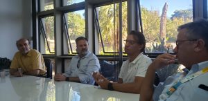 O superintendente da unidade de Franca, Gilson Santos de Mendonça, recepcionou os engenheiros Claudio Roberto Baudenbacher, Eduardo Mendonça de Ciqueira e Francisco Manoel Morás, membros da Comissão de Eficiência Energética do Saae/Sorocaba. Luciano Reami, gerente de divisão de Operação de Esgoto da Sabesp de Franca; Luiza Peixoto, encarregada de esgoto, e a engenheira civil Maria de Fátima Brito Ferreira, gestora de perdas da unidade, também acompanharam o encontro.