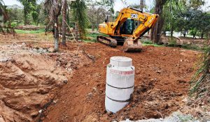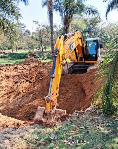 Além da rede de esgoto, o Saae/Sorocaba vem realizando, nos últimos meses, todos os trâmites legais e intervenções necessárias para a construção do RDC Jardim Maria do Carmo. No local, também neste mês de agosto, foram iniciados os trabalhos de escavações. Uma escavadeira hidráulica está no local e começou a ser deslocada a terra que será usada na construção do futuro dique do RDC. Além disso, outras importantes mobilizações foram executadas para a obra.