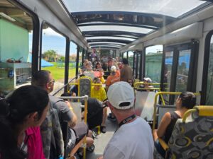 Após a visita técnica, o roteiro seguiu em direção ao Centro Histórico de Sorocaba, percorrendo a tradicional rota tropeira, com passagem por vias e pontos simbólicos da cidade, como a Avenida General Carneiro, Praça Nove de Julho, Avenida Moreira César e Rua Cesário Mota. Na região central, os participantes contemplaram atrativos, como o Mosteiro de São Bento e a Catedral Metropolitana, com parada na Praça Coronel Fernando Prestes para registros.