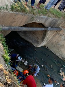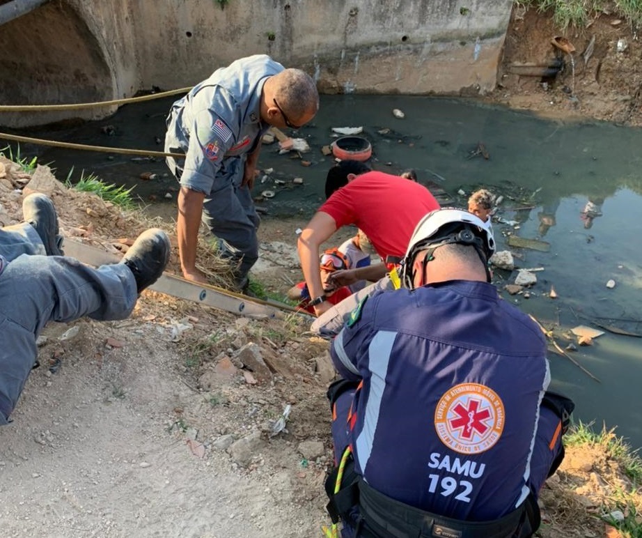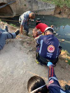 Samu e Corpo de Bombeiros resgatam jovem que sofreu queda em galeria de esgoto