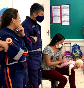 A Secretaria da Saúde (SES) de Sorocaba, por meio do Serviço de Atendimento Médico de Urgência (Samu), realizou, na manhã de terça-feira (10), mais uma ação educativa para divulgar e orientar sobre técnicas de primeiro socorros, em especial, a Manobra de Heimlich, no CEI-13 “Aluisio de Almeida”, no bairro de Brigadeiro Tobias.