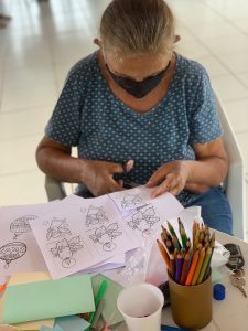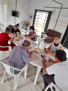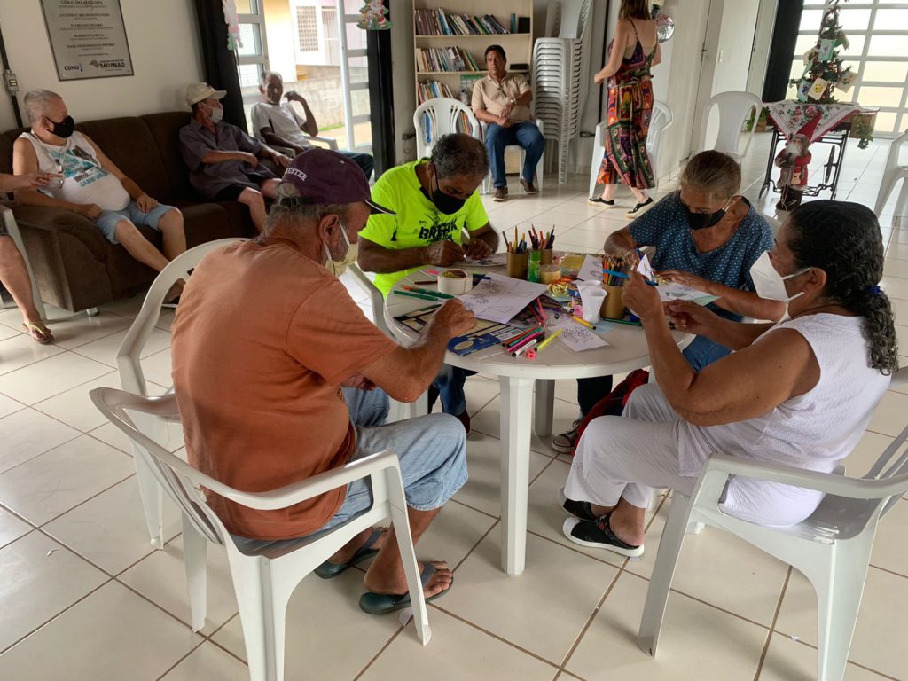 Inicialmente, foi feita uma atividade com os idosos, trabalhando a questão da essência do Natal e seu significado. Todos tiveram a oportunidade de se manifestar e falar um pouco sobre a importância dessa data comemorativa sob a perspectiva de sua própria trajetória de vida. O sentimento de gratidão, inclusive por estarem em um lugar como a Vila Dignidade e pelo apoio recebido ali, foi o tema mais recorrente na fala dos participantes.