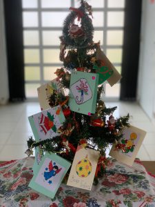 Além disso, cada pessoa presente pôde criar o seu próprio cartão de Natal e todos foram usados para decorar a árvore natalina, montada no salão de festas do condomínio.