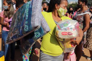 A Secretaria da Cidadania (Secid) realizou, na manhã desta quarta-feira (14), a entrega de 250 cestas básicas e 500 cobertores para 250 famílias da Comunidade Santa Rosa, na Zona Norte, todas em situação de vulnerabilidade social ou emergencial e cadastradas pelo Centro de Referência em Assistência Social (CRAS). As cestas básicas vieram da campanha “A Fome não é Fake!” e os cobertores foram arrecadados na “Campanha de Inverno 2021”, ambas organizadas pelo Fundo Social de Solidariedade.