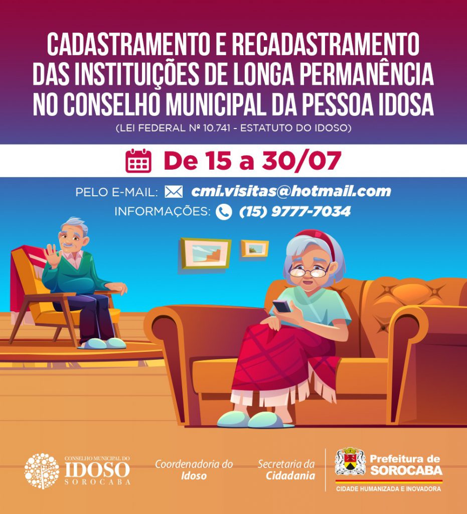 A Secretaria da Cidadania (Secid) e o Conselho Municipal da Pessoa Idosa (CMI) solicitam que Instituições de Longa Permanência voltadas ao atendimento do público idoso realizem o cadastramento ou recadastramento junto ao CMI, no período de 15 a 30 de julho.