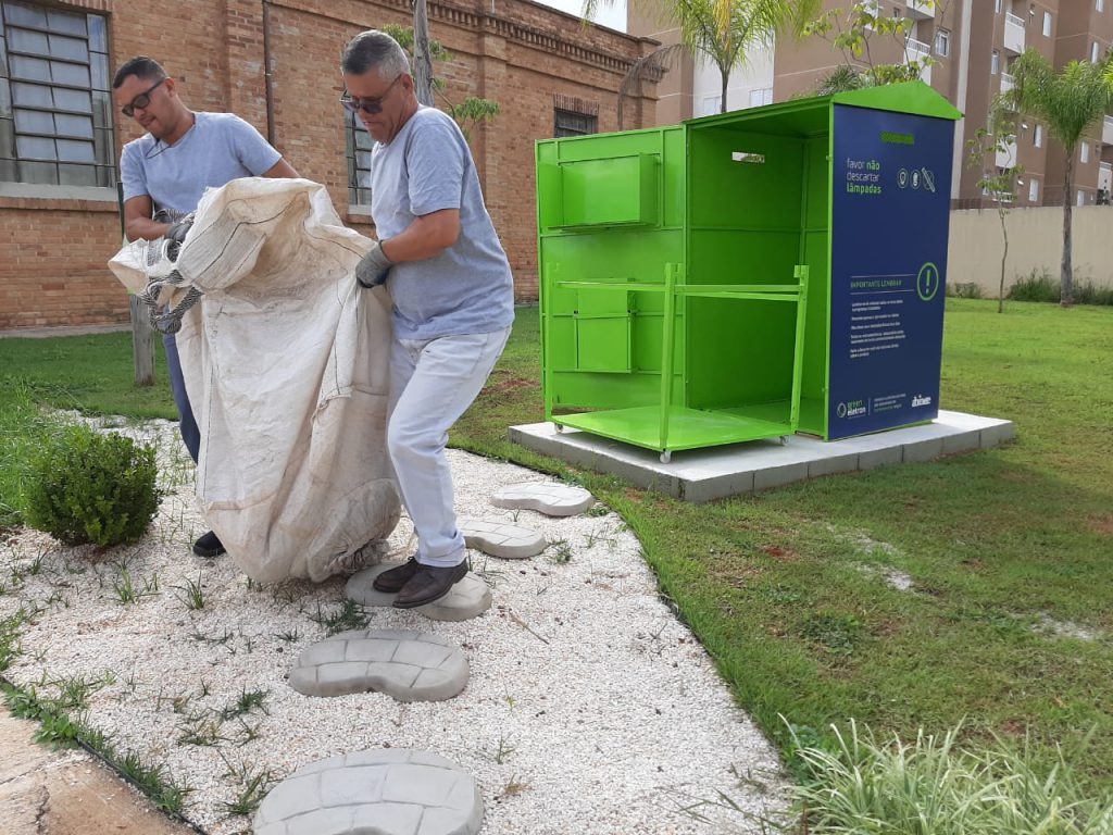 Lâmpadas fluorescentes não estão incluídas para descarte nesse coletor. A relação completa de todo o material que pode ser descartado pode ser consultado no site: https://www.greeneletron.org.br/lista-completa.