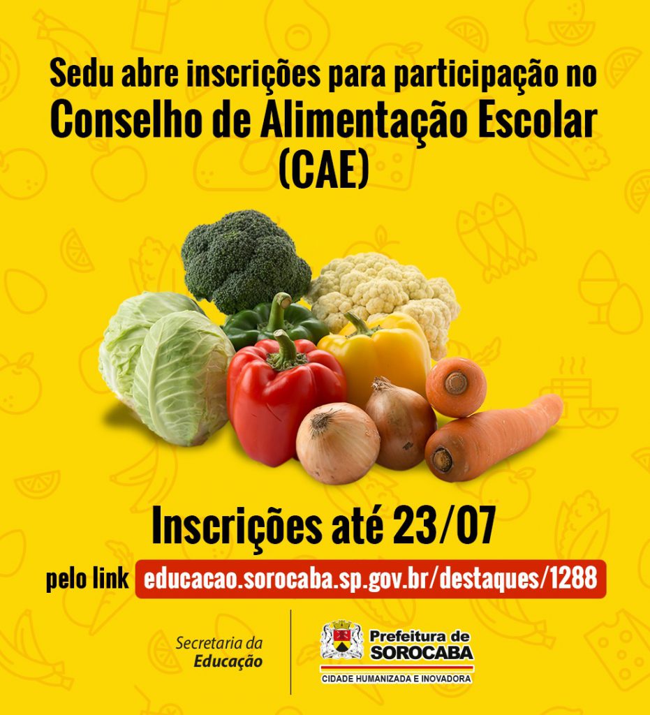 A inscrição vai até o dia 23 de julho. Estão disponíveis os formulários virtuais de inscrições para compor o CAE nos segmentos de representantes de Organização da Sociedade Civil e de Pais/Responsáveis de alunos da Educação Básica, seguindo todas as determinações estabelecidas nos Editais SEDU 06/2021 e 07/2021. Para se inscrever, basta acessar o link: https://educacao.sorocaba.sp.gov.br/destaques/1288