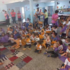 A iniciativa está sendo realizada em todos os Centros de Educação Infantil (CEIs) da rede municipal de ensino, envolvendo as crianças atendidas. Na segunda-feira (24), dando início oficialmente às atividades especiais, no CEI-64 “Joana Simon Sola”, na Vila Rica, Zona Leste, houve contação de história e brincadeiras cantadas para os bebês.