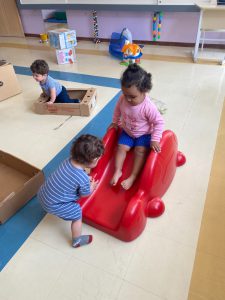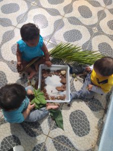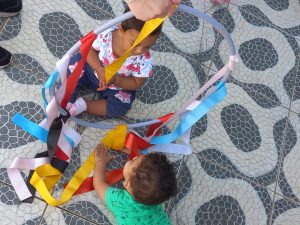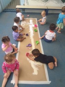 No CEI-58 “CEI-58 Profª. “Dulce Puppo Oliveira Pinheiro”, uma das explorações em grupo foi com caixas contendo materiais naturais, como folhas, pedras e terra. Caixas maiores, além disso, bastaram para transformar a brincadeira em uma grande alegria. E a mesma escola recebeu a atração Tempo de Brincar.