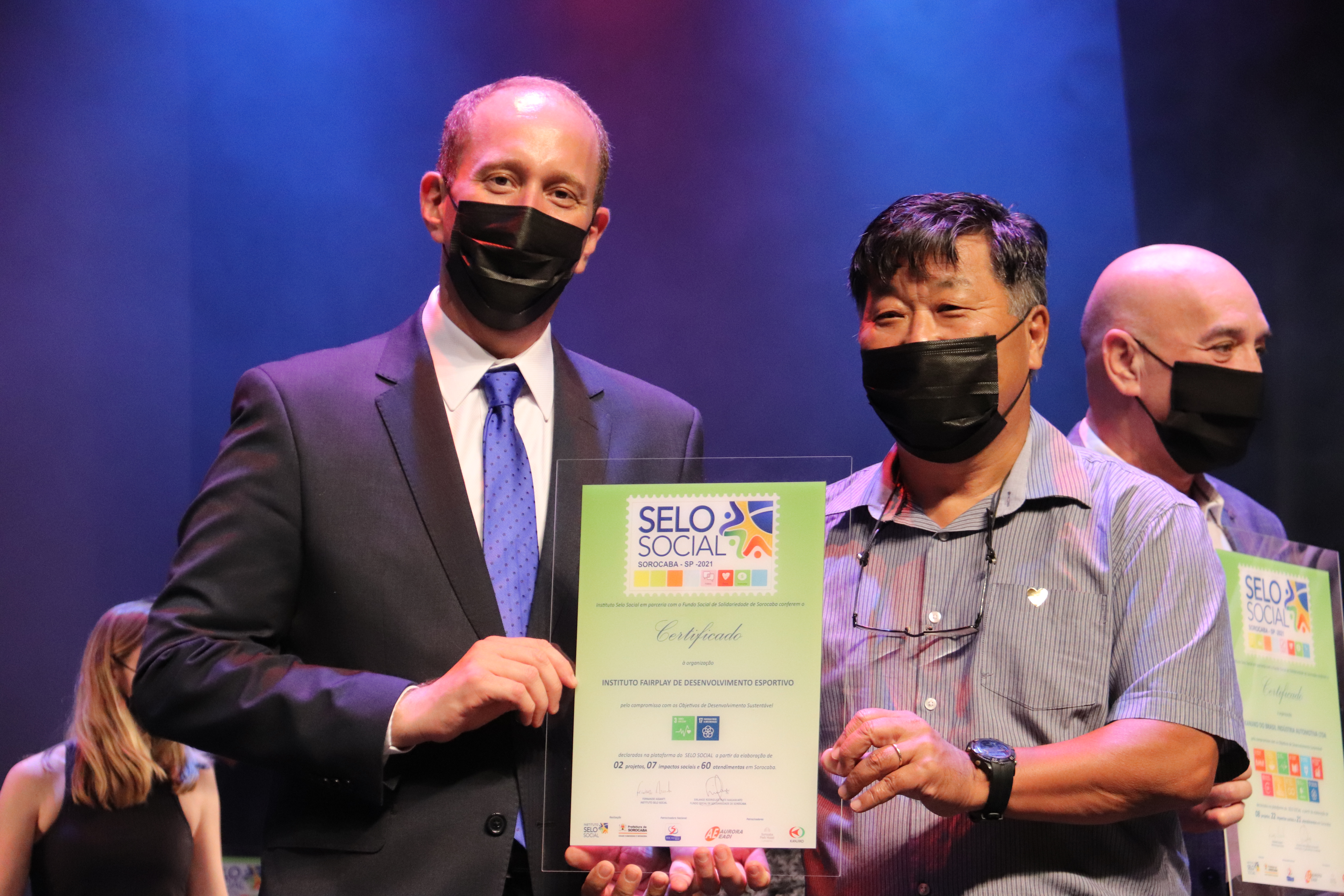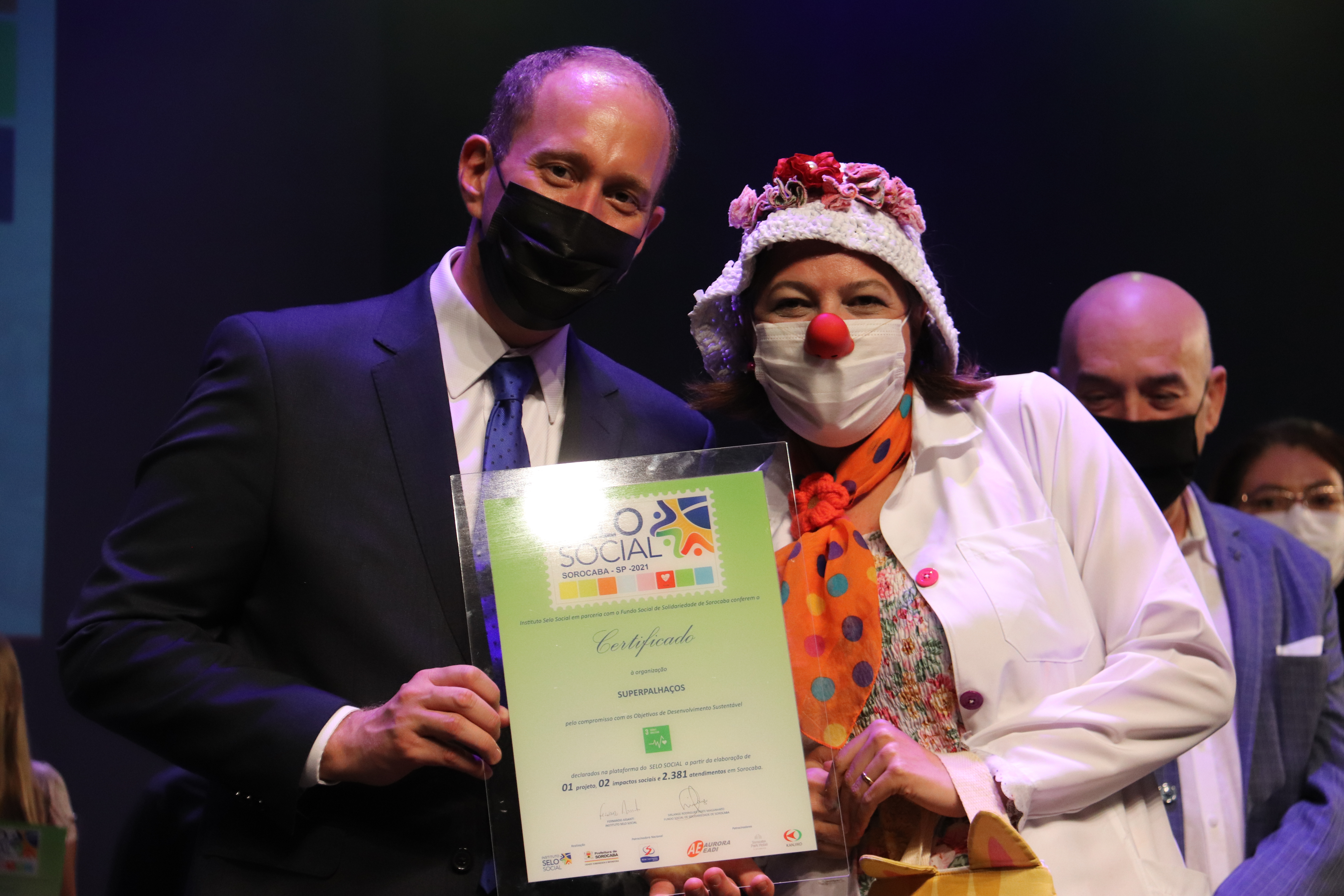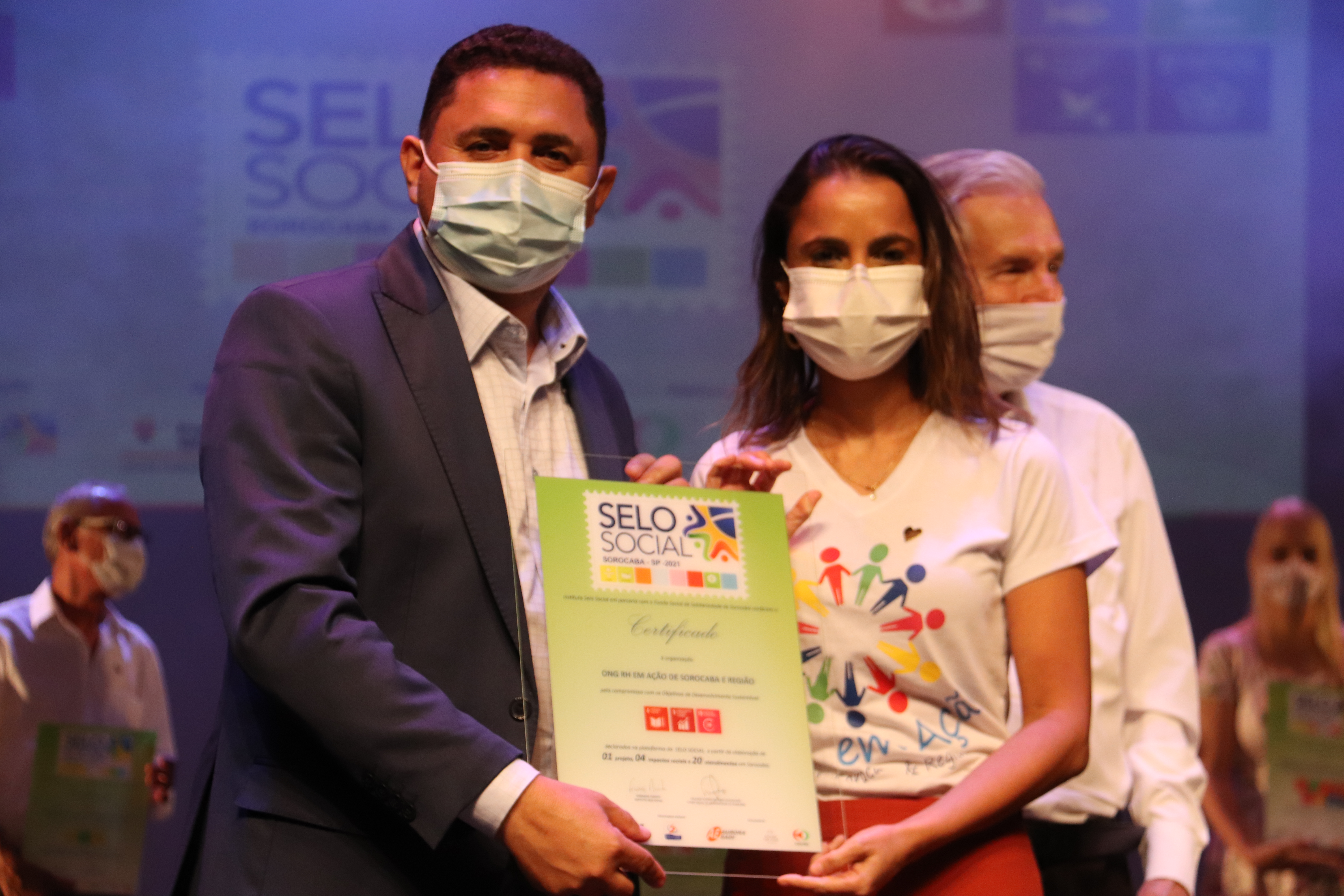 Em seguida, foram entregues os certificados às 41 instituições que fizeram jus a ele, pelos projetos desenvolvidos junto à comunidade. Receberam a certificação as seguintes entidades: do setor público, o Fundo Social de Solidariedade; a Secretaria da Educação (Sedu); a Secretaria de Esportes e Qualidade de Vida (antiga Secretaria de Esportes e Lazer – Semes); e Secretaria do Meio Ambiente, Proteção e Bem-Estar Animal (Sema). Do setor privado, Atlanta Inf. e Comércio de Acessórios; Clarios Energy; Colégio Ser; Daniela Franco; Gpaci (Grupo de Pesquisa e Assistência ao Câncer Infantil); Kanjiko do Brasil; Ofebas; Prysmian; Sesi (Serviço Social da Indústria); Senac(Serviço Nacional de Aprendizagem Comercial ); Ucens (União Cultural e Esportiva Nipo-Brasileira de Sorocaba); Unimed; Unniroyal Química; e Uniso. E na sociedade civil, ADES (Agência de Desenvolvimento Econômico Social); APAE (Associação de Pais e Amigos dos Excepcionais); Arquidiocese de Sorocaba; Associação Educativa Santa Rita de Cássia; Afissore (Associação dos fissurados lábio Palatais de Sorocaba e Região); ASCA (Associação Social Comunidade de Amor); Associação Amizadaria Solidária; Associação Criança Feliz; Casas André Luiz; Clube Sorocabano de Bicicross; Coopereso (Cooperativa de Egressos e Familiares de Egressos de Sorocaba e Região); Fundação Ubaldino do Amaral; Geração Futura Aprendizagem; Ibrapper; Instituto Miguel Soeiro; Instituto Fairplay; Liga Sorocabana Kickboxing, Arte Marcial e Esporte de Contato; Mercatudo Casas André Luiz; ONG RH em Ação – Sorocaba e Região; Peregrino do Cuidar; Serviços de Obras Sociais; Sociedade Esportiva Aquática de Sorocaba; e Super Palhaços.