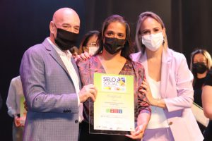 O Instituto Selo Social, representado por sua diretora Carina Giunco, também prestou uma homenagem ao Fundo Social de Solidariedade de Sorocaba, com a entrega do quadro de articulador local do Selo Social.