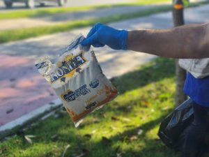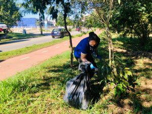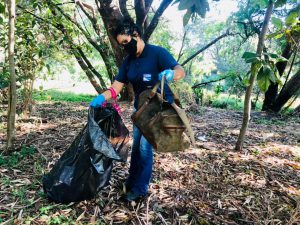 Junto com a caminhada, as equipes fizeram uma limpeza ao longo do trajeto, de onde foram coletados mais de 10 sacos de lixo de 100 litros, cada, com materiais descartados de forma irregular às margens do Rio Sorocaba e na Praça da Biodiversidade. Dentre os materiais recolhidos, estavam garrafas pet, copos plásticos, papelão, garrafas de vidro (long neck), embalagens de isopor (marmitex), sacolas plásticas, roupas, sapatos e até um macaco hidráulico de automóvel.