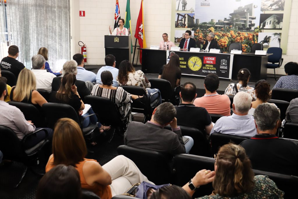 Na manhã desta sexta-feira (14) a Prefeitura de Sorocaba, por meio da Secretaria da Saúde (SES), realizou um seminário para debater o enfrentamento da dengue. O evento ocorreu no Salão de Vidro do Paço Municipal e reuniu diversas cidades da região, além da presença da prefeita Jaqueline Coutinho e autoridades da cidade e do Estado. O Departamento Regional de Saúde (DRS 16), a Superintendência de Controle de Endemias (Sucen) e o Grupo de Vigilância Epidemiológica (GVE) estiveram presentes. Diretores dos hospitais da cidade e membros das comissões de Controle de Infecção, assim como a Ministério Público, representado pela promotora Cristina Palma, e a Câmara Municipal, através do médico e vereador, Hélio Brasileiro, também compareceram.