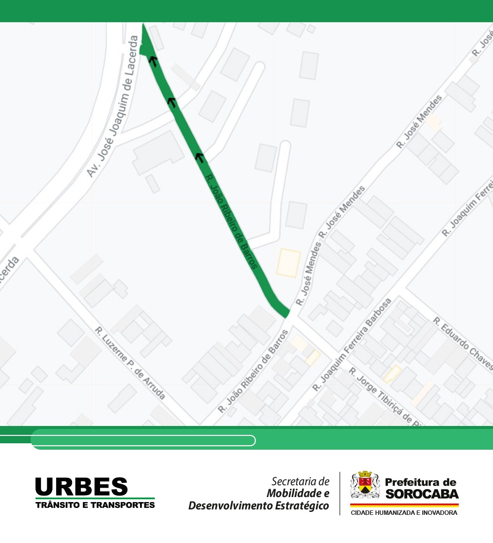 A Secretaria de Mobilidade e Desenvolvimento Estratégico (Semob), em parceria com a Urbes – Trânsito e Transportes, altera a direção de tráfego de veículos, a partir desta sexta-feira (10), em trecho da Rua João Ribeiro de Barros, na Vila Odin, Zona Norte de Sorocaba.