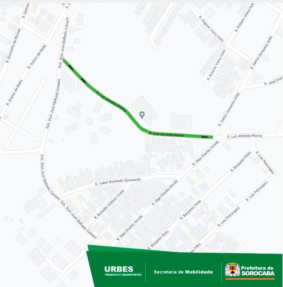 A Secretaria de Mobilidade (Semob) alterou, nesta semana, o sentido de direção da Rua Luiz de Almeida Marins, no bairro de Aparecidinha, Zona Leste da cidade. Essa via passa a ser mão única de tráfego, desde a Rua Carlos Cerqueira Holtz até a Estrada Dom José Melhado Campos.