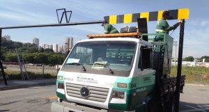 A altura máxima para passagem sob o delimitador é de 3 metros. O motorista que for flagrado desrespeitando o limite de altura está sujeito à multa grave, no valor de R$ 195,23, e à perda de cinco pontos na habilitação, conforme previsto pelo Código de Trânsito Brasileiro (CTB).