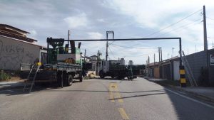 Para tanto, desde segunda-feira (11), foi instalado um dispositivo delimitador de altura na Rua Osmar de Oliveira, indicando a impossibilidade de passagem desses veículos pelo local. O tráfego constante de caminhões no bairro, segundo relatam os moradores, estava causando danos no asfalto e nas residências, devido ao peso dos veículos e à trepidação ocasionada.