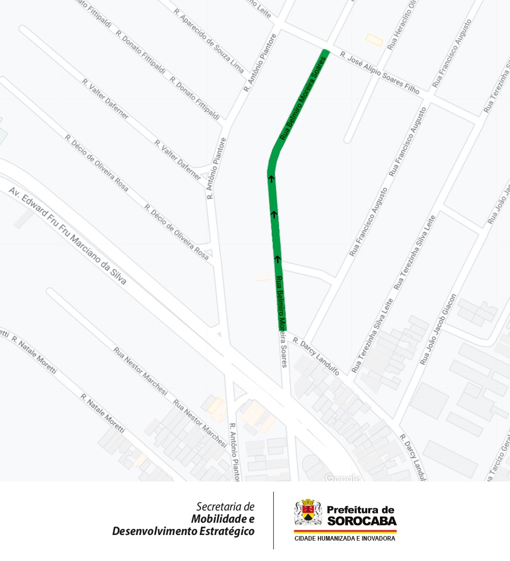 A Secretaria de Mobilidade e Desenvolvimento Estratégico (Semob) altera, a partir desta quinta-feira (26), o sentido de trânsito na Rua Belmira Moreira Soares, no Jardim São Guilherme, Zona Norte de Sorocaba. A via passará a ter mão única, desde o seu cruzamento com a Rua Darcy Landulfo até a Rua José Alípio Soares Filho.