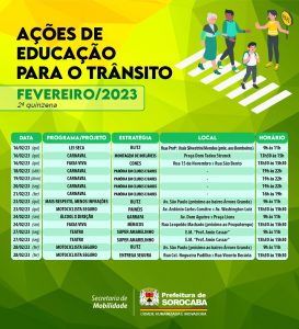 O calendário completo das ações educativas de trânsito da Semob pode ser conferido nas mídias sociais da Prefeitura de Sorocaba (@prefeituradesorocaba). Também é possível