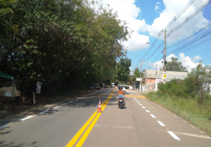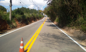 Além da sinalização de solo, outra melhoria realizada no local foi a poda de vegetação e a retirada de entulho às margens do trecho da Estrada do Ipatinga que fica na cidade.