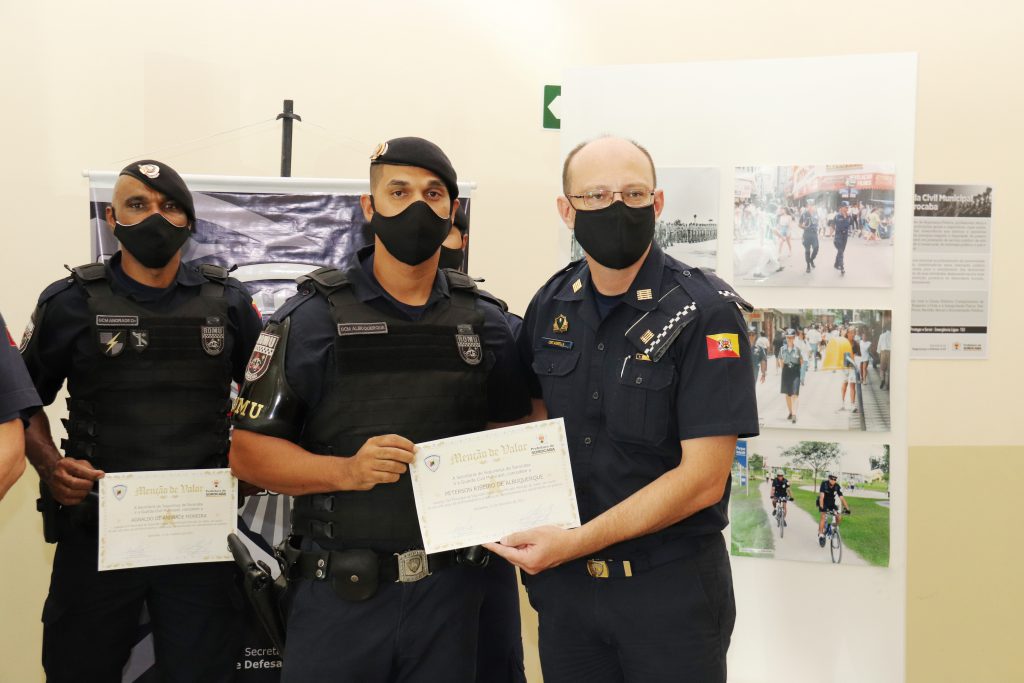 Na própria sede da GCM, os guardas receberam uma Menção de Valor, das mãos do secretário municipal Coronel Vitor Gusmão e do comandante da GCM, Henrique de Agrella, em razão do alto grau de profissionalismo e dedicação demonstrados em atendimento ao público.