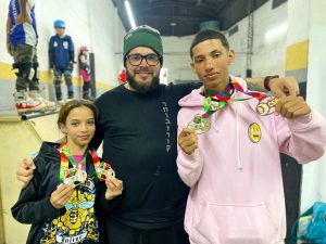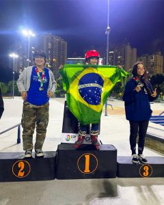 Os atletas Leonardo Araújo e Ana Julia Silva, a “Abelhinha do Patins”, representando a cidade, levaram para casa as medalhas nas modalidades Street e Park, em disputa com mais de 200 outros atletas do Brasil e da América do Sul.